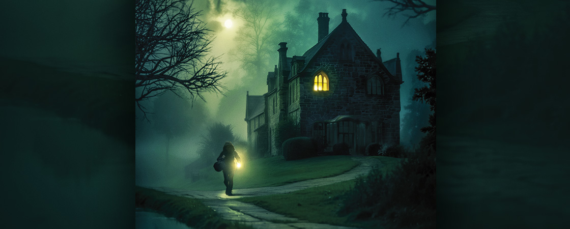SD3: Sara turns down a long gravel drive. At the far end looms a grim-looking mansion.