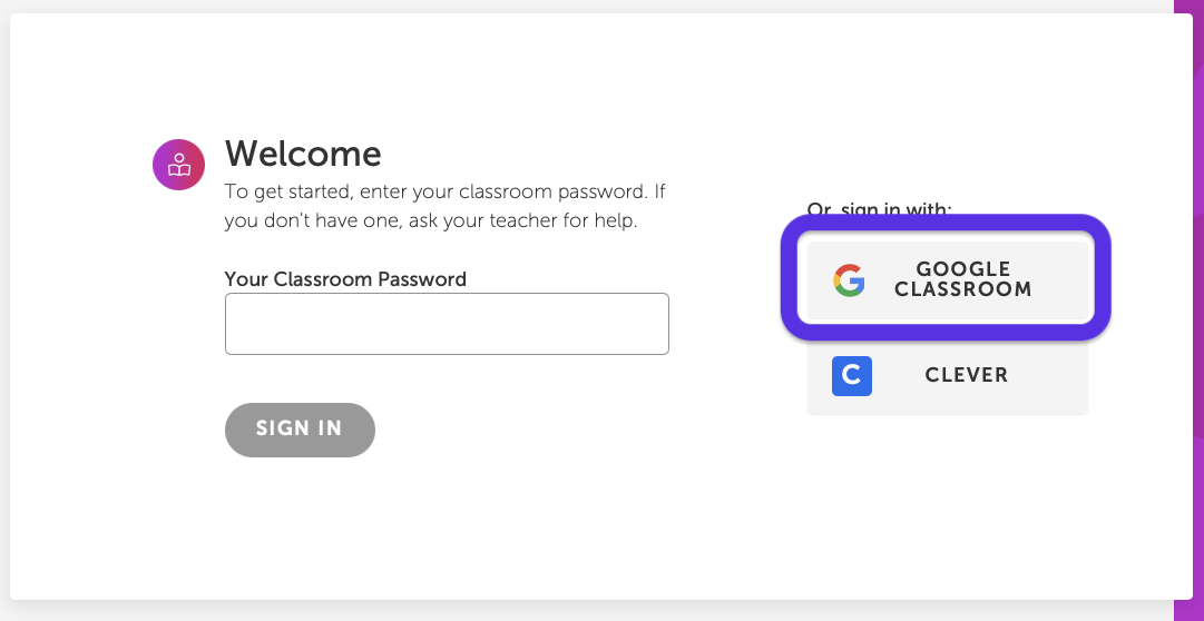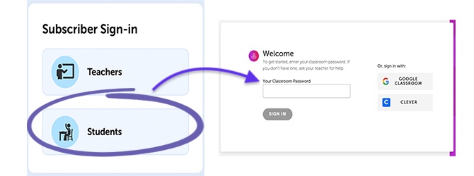 That’s it! Once they sign in, they’re taken to the website’s student view. And if your school is using a Learning Management System like Google Classroom or Clever, the process is even simpler. Once you sync your account with Scholastic, all your students need to do is click the Google Classroom or Clever buttons. They will not need a classroom password.